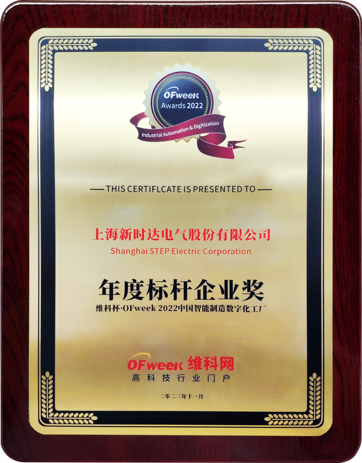 Den 16. november 2022 blev "Ofweek Cup 2022 China Industrial Automation and Digitalization Industry Annual Selection and Award Ceremony" arrangeret af OFweek afholdt i Shenzhen. Efter screening og online-afstemning fra arrangørerne og omfattende scoring af autoritative eksperter i branchen, blev de endelige 53 vindere annonceret ved prisoverrækkelsen.STEP vandt 2022 China Intelligent Manufacturing Digital Factory Annual Benchmark Enterprise for sine bemærkelsesværdige resultater inden for automatisering og digitalisering.